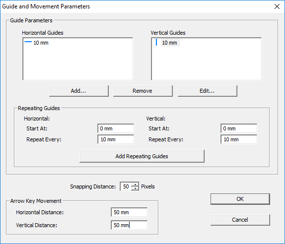 You can also set the snapping distance (when a grid snaps to a guideline) and arrow key distances (when moving a grid using the arrow keys).
