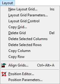 Use these commands to manage layouts (create, save, copy, and delete); to enter and modify layout parameters. Use these commands to copy and delete columns and rows in the current grid.