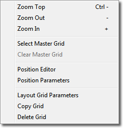 Use this command to align grids. Use these commands to open the Position Editor; and to enter or modify Position Parameters. |