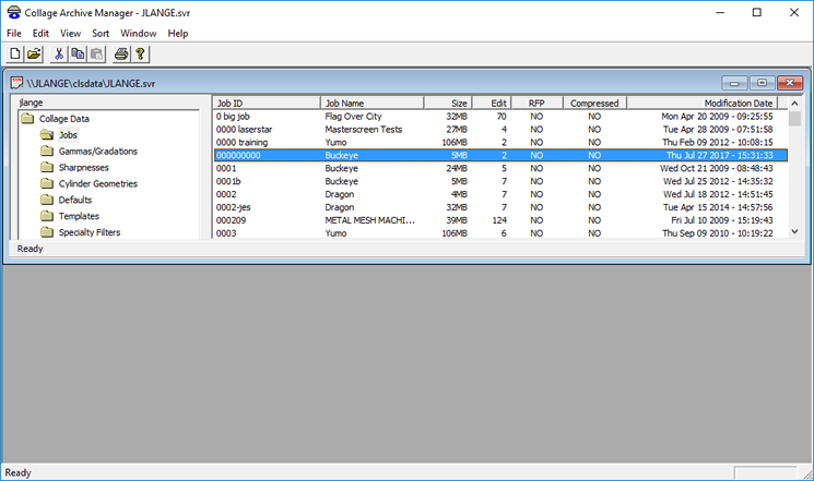 Use the Archive Manager to store Collage jobs and other files in another location: usually on a networked location, or on DVD. When you archive a Collage job, all the images and settings in that job are copied or moved to the archive. By removing the Collage job from the Collage computer, you free up space on the Collage computer. A Collage computer with no free space can stop working or work erratically, so archiving is critical. When the job is needed again, restore it from the archive to the server.