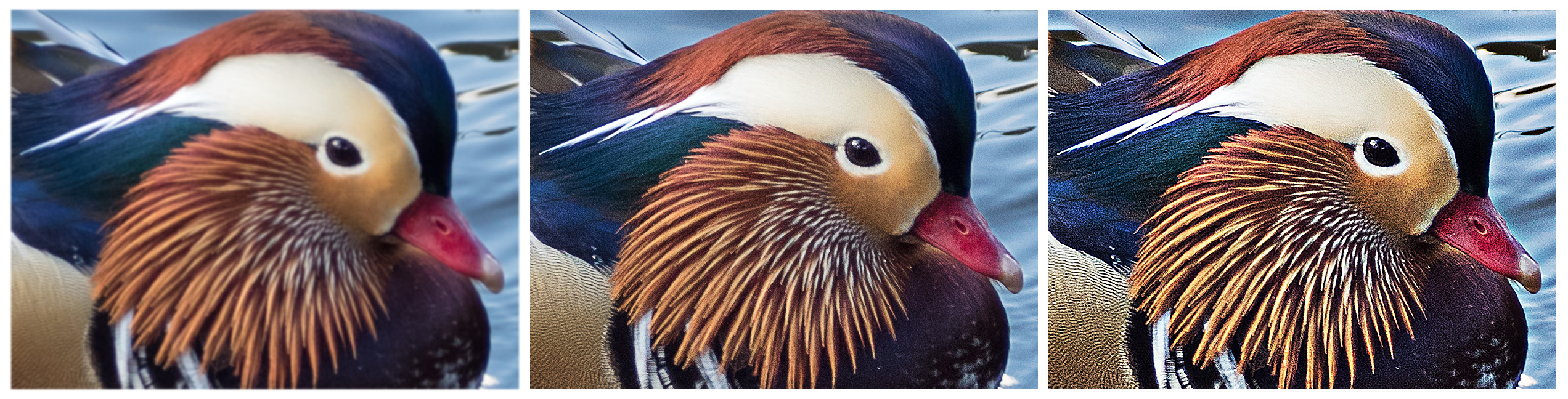 – Middle, some sharpness — Right, too much sharpness